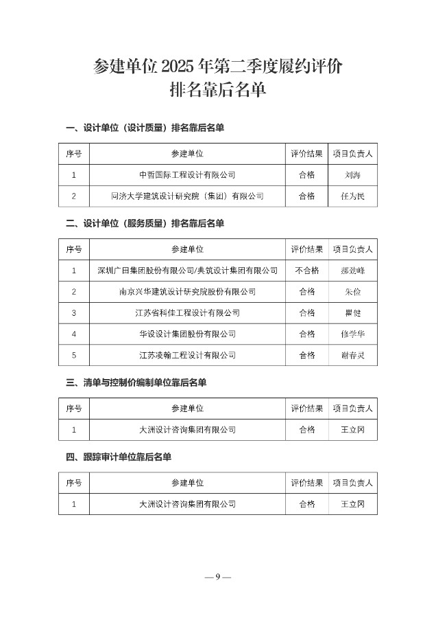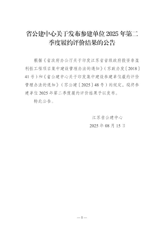 省公建中心關(guān)于發(fā)布參建單位2025年第二季度履約評價結(jié)果的公告