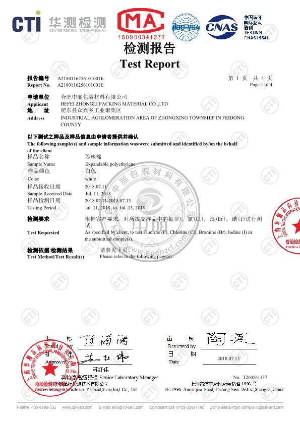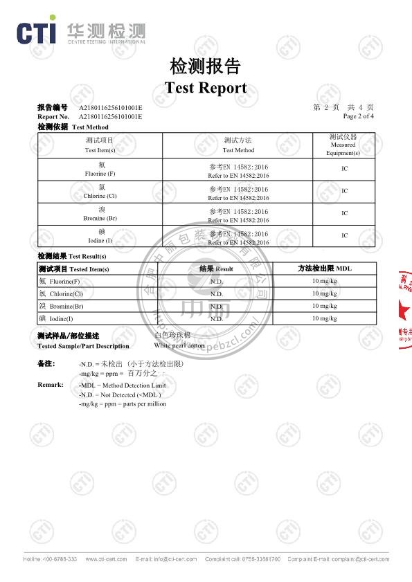 中麗包裝珍珠棉鹵素檢測(cè)報(bào)告