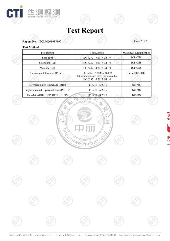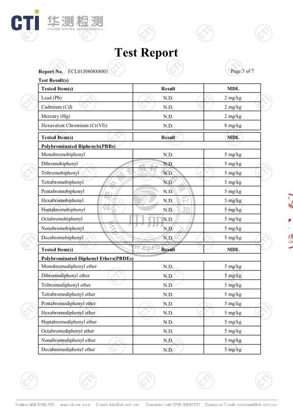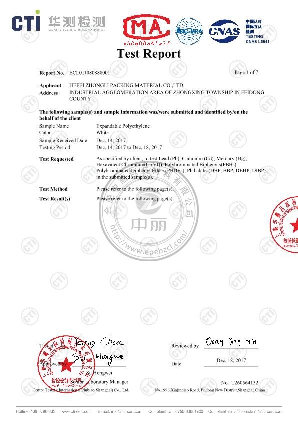 中麗珍珠棉英文檢測(cè)報(bào)告