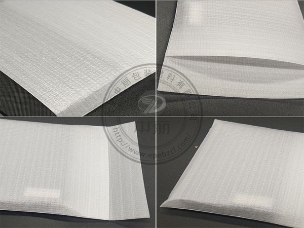 先選用優(yōu)質(zhì)的珍珠棉材料進(jìn)行覆膜處理,一般是覆合PE膜,再通過折邊機(jī)對覆膜后的珍珠棉材料進(jìn)行折邊處理,最后再使用制袋機(jī)制成珍珠棉袋